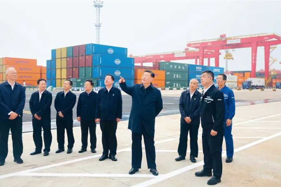 2024年5月22日至24日,中共中央总书记、国家主席、中央军委主席习近平在山东考察。这是22日下午,习近平在日照港察看全自动化集装箱码头作业场景。 新华社记者 鞠鹏/摄