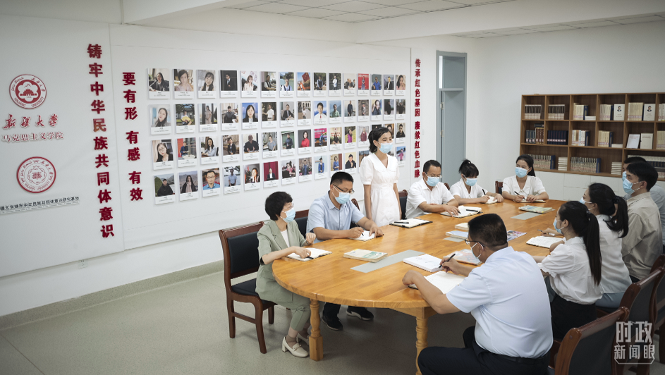 新疆大学,铸牢中华民族共同体意识研究基地的讨论现场。(总台央视记者王哈男拍摄)