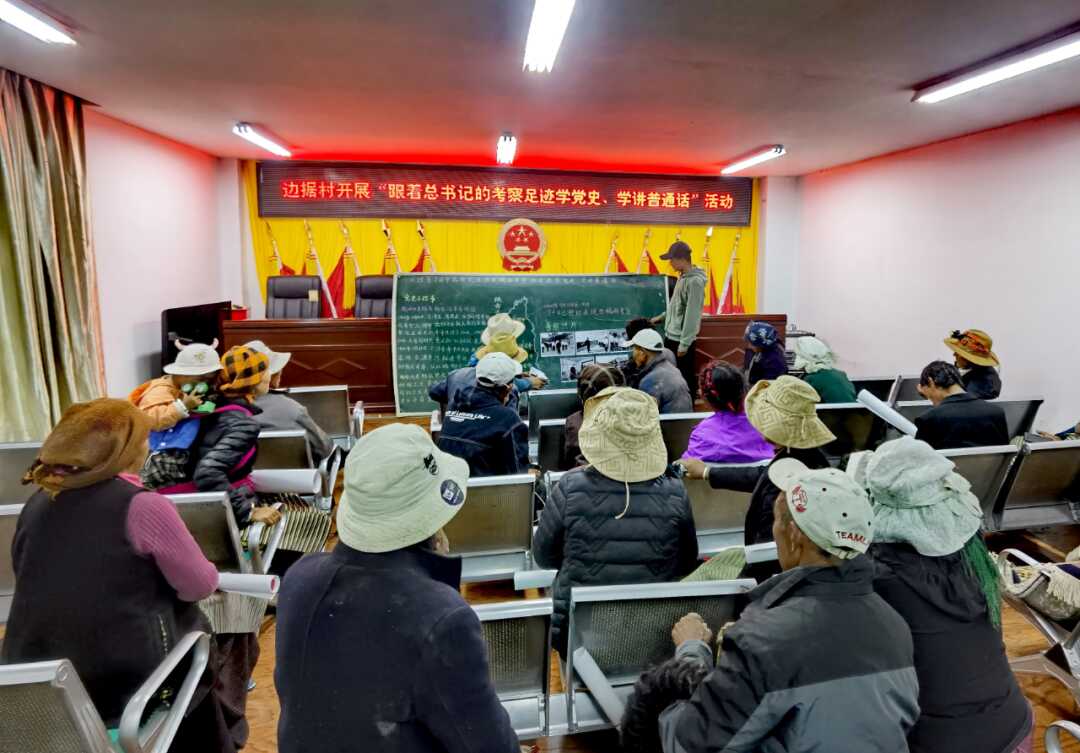西藏山南市委办驻卡热乡边据村工作队开展国家通用语言文字培训。图源:羊湖之声