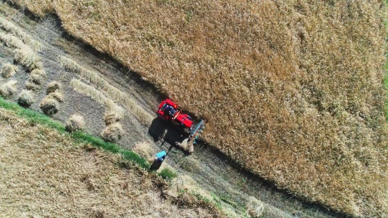 西藏日喀则市农民在用农机收割青稞。新华社记者 普布扎西 摄